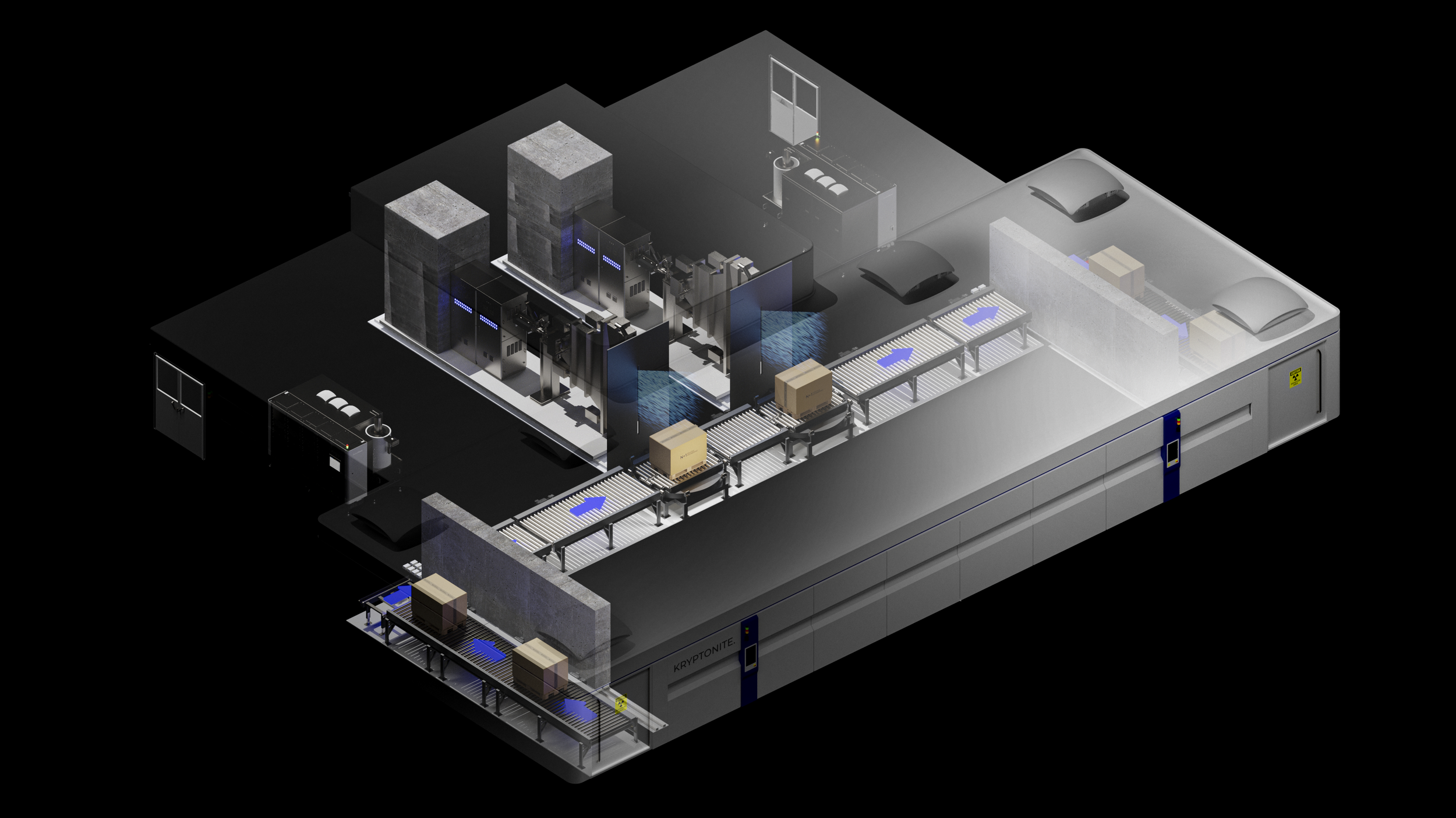 Using rapidly deployable core and conveyor modules, Kryptonite eliminates the need for expensive, permanent irradiation bunkers.